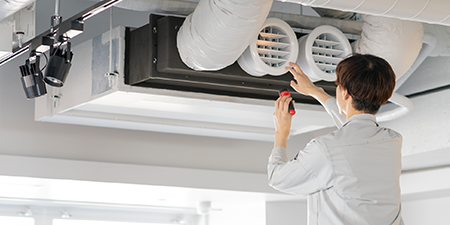エアコンや送風機などの空調設備を分解して清掃し、故障や不具合があれば修理する作業です。
